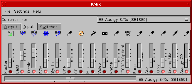 I have an SB Audigy RX and there is some problem the way KMix handle its channels.